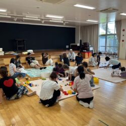 本日の親子登園日では、講師の先生による“親子体操”でみんなで楽しく身体を動かしました♪抱っこしながらふれあい遊び、タオルケットを使ってあそんだり、最後にはサーキットで大はしゃぎ♪ニコニコ楽しい時間で...