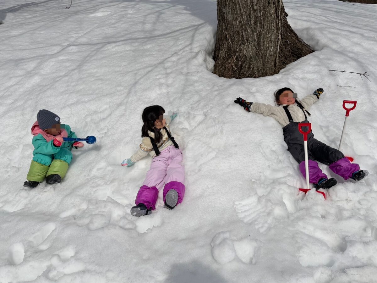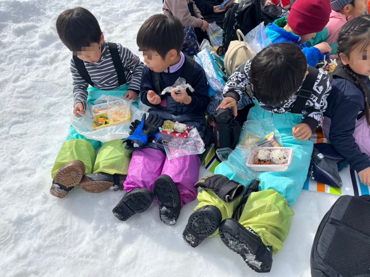 少し早めの昼食をとり、また雪遊びをしてとっても楽しんでいます。