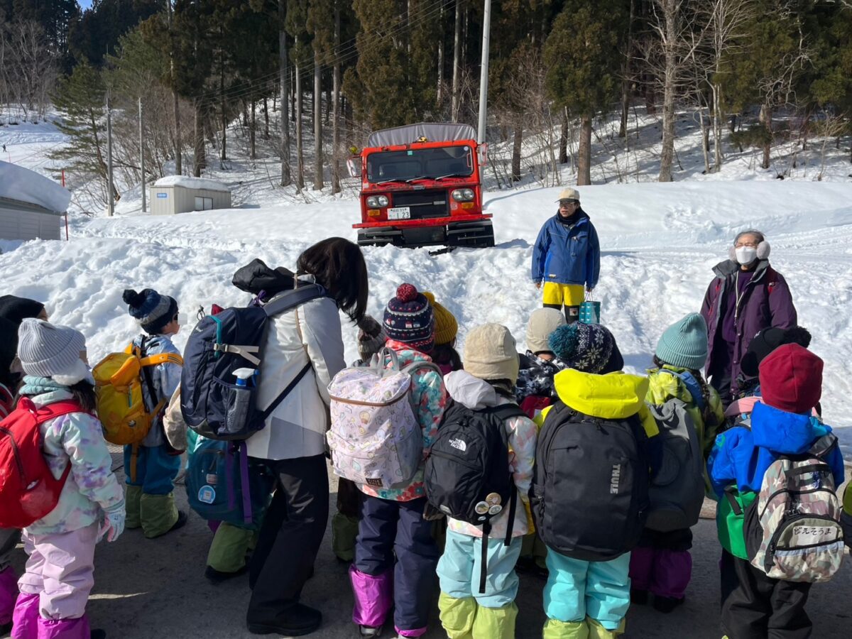 晴天の中、無事樺山荘に到着しました。沢山の雪に大喜びの子どもたち。