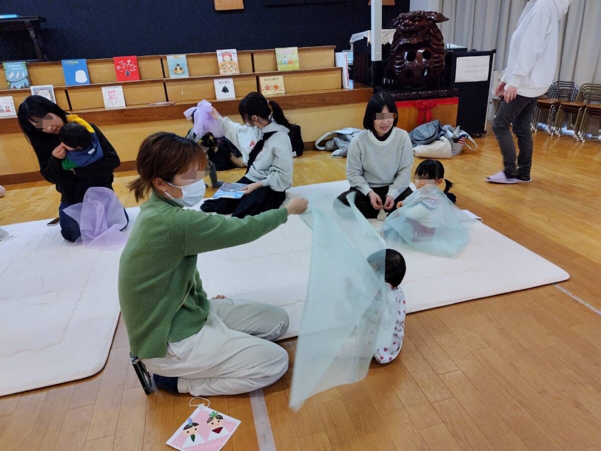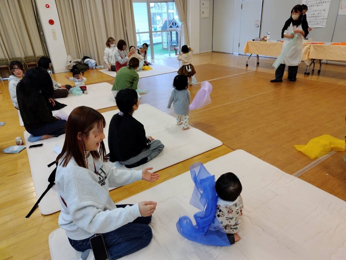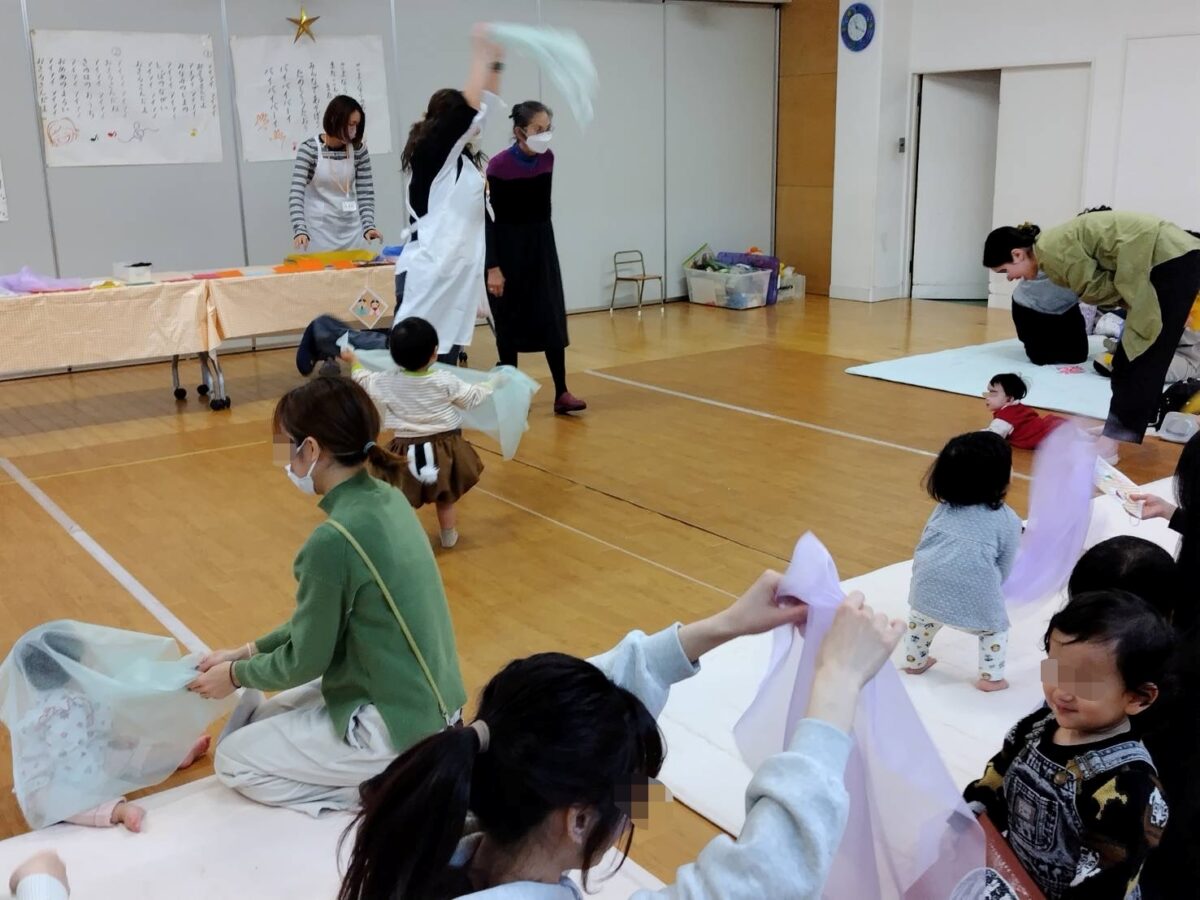 絵本やおやつ、布を使っての触れ合い遊びなども楽しんだ1日。また、一緒にお遊びしましょう♡