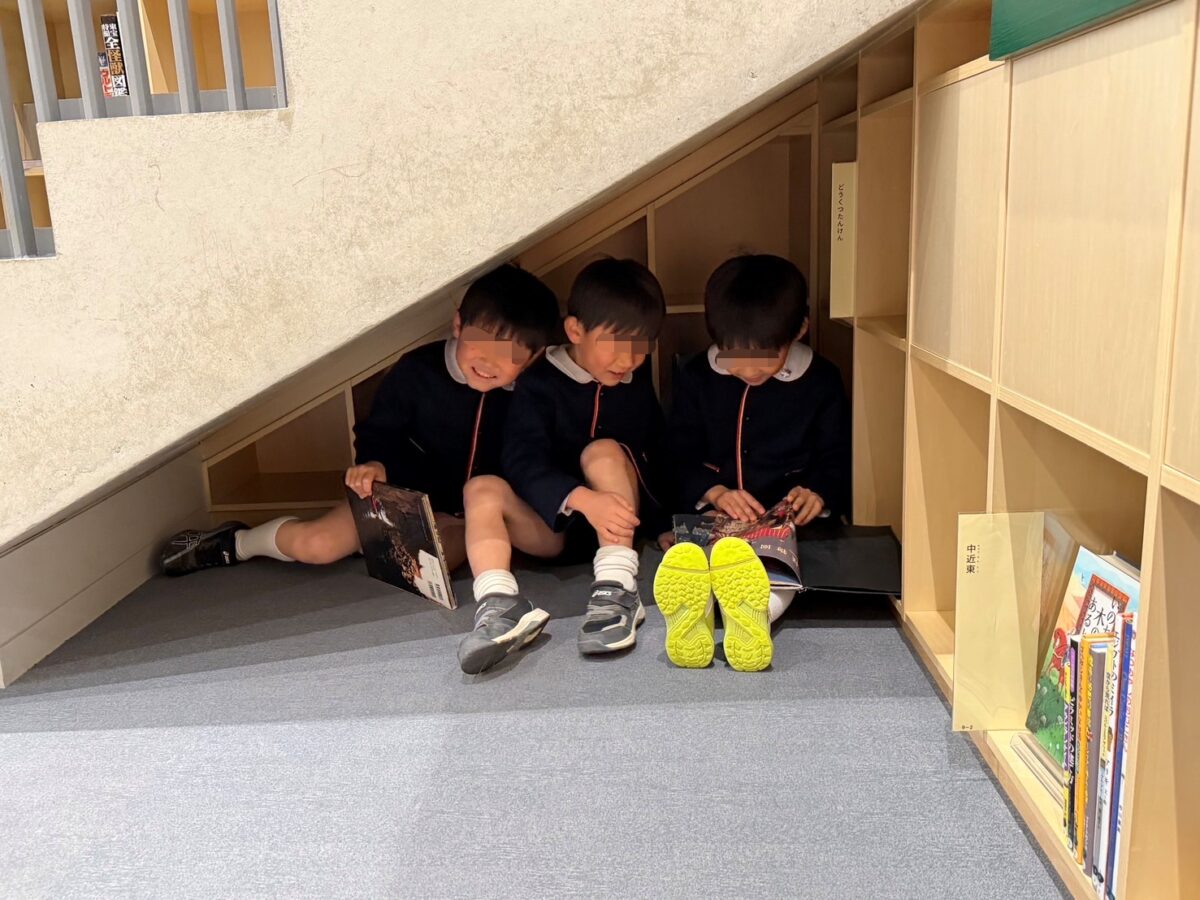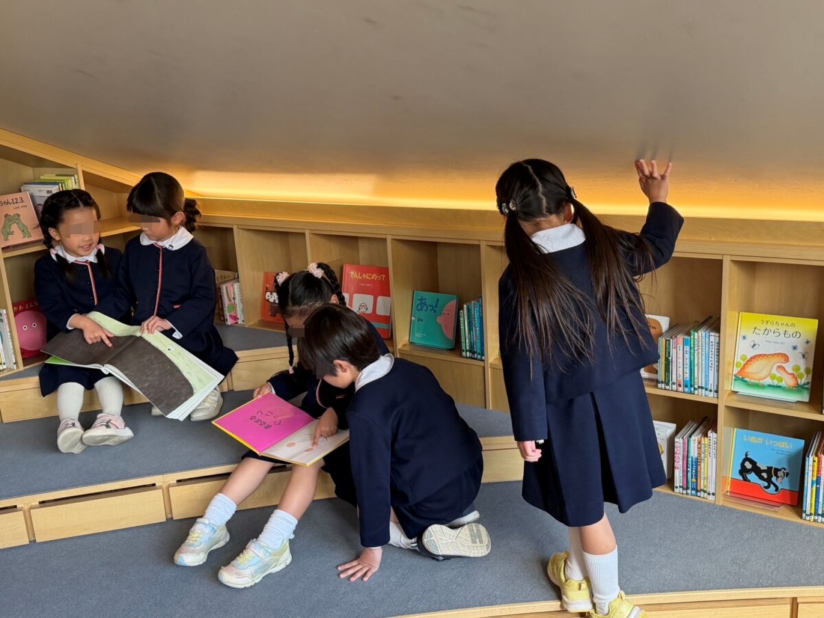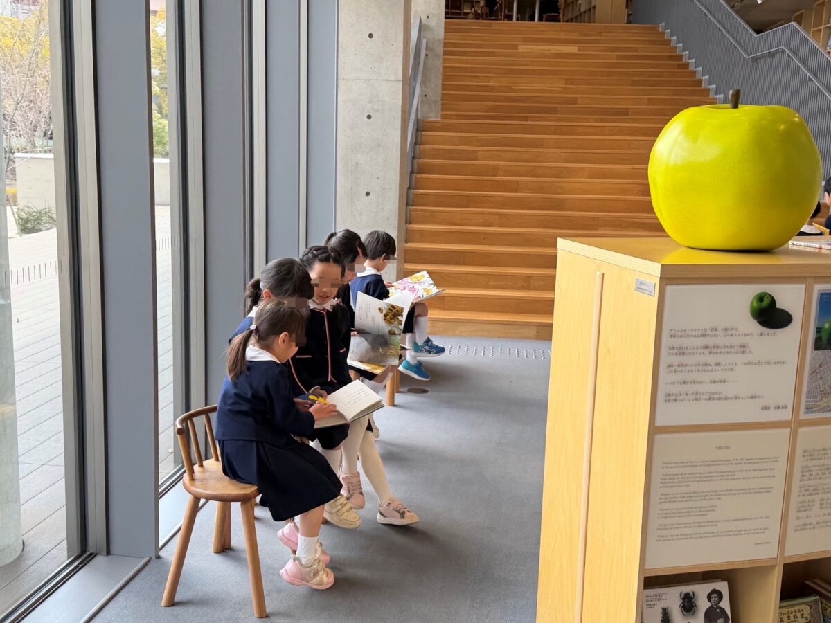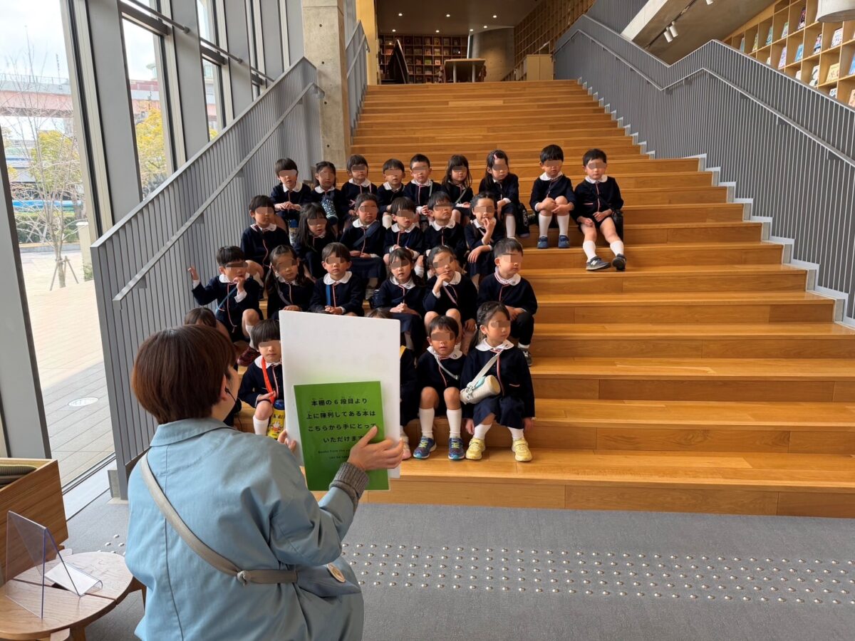 バスに乗っての遠足!年長さんだけで「こども本の森」へ行ってきました。世界中の沢山の絵本を目にし、ウキウキワクワクが止まらない子どもたち。お約束を聞いて、館内は静かに絵本探し。“いのちの森コーナー””考える森コーナー”“生き物の森コーナー”といろんなジャンルの見たこともない絵本が沢山!!また、絵本を読むコーナーにも色々と細工してあり、子どもたちは落ち着く場所を見つけ読んでいました。「まだまだ読みたい!!」と後ろ髪を引かれながら幼稚園に帰ってきました。またお家でもお話を聞いてくださいね!
