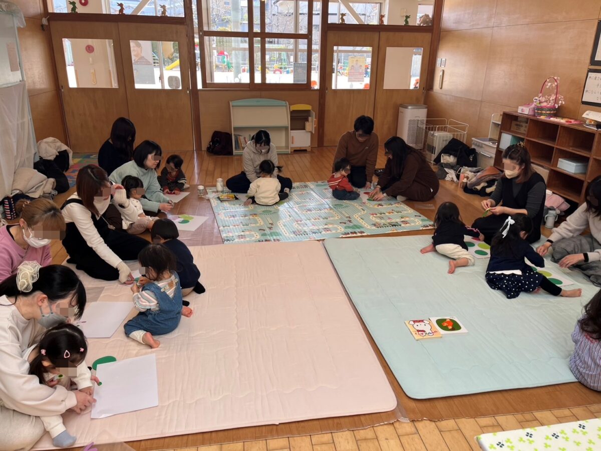 本日の親子登園日では、まず好きなおもちゃで自由遊び♪プラレールなど新しいおもちゃも登場!ブロックやおままごとなど沢山遊んだあとは、おやつタイムで一休み😊