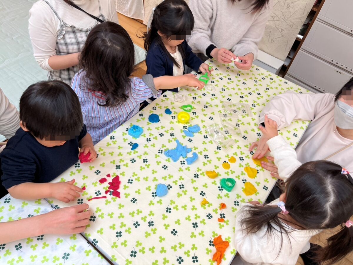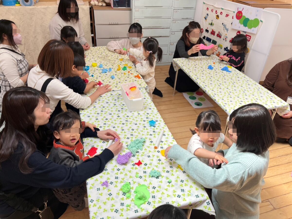 最後に色々ねんどが登場!!寒天・小麦粉・砂・つぶつぶなど色んな感触に夢中♪集中して遊んでいました!