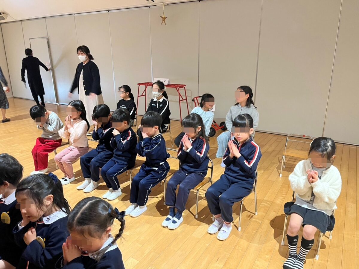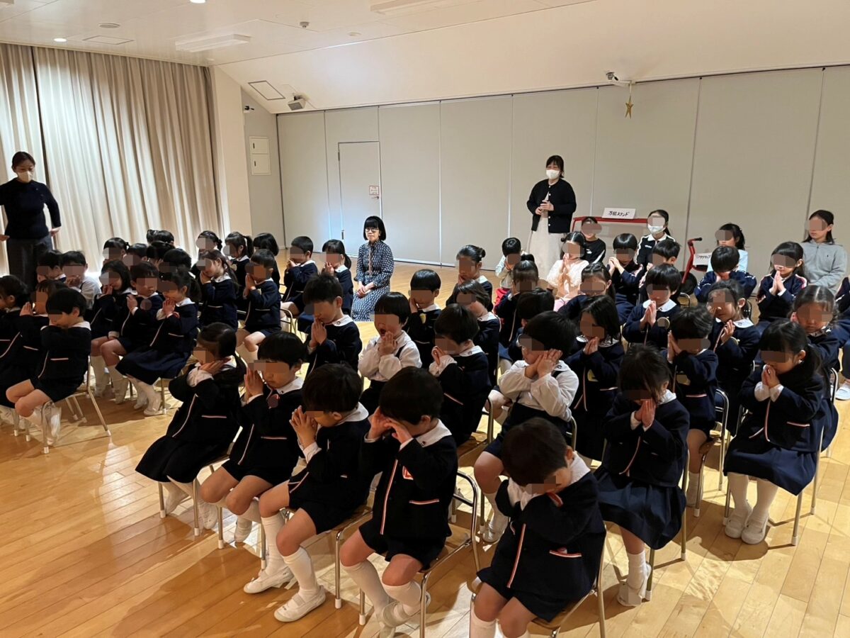 みんなで、今年も一年間無事に過ごせたことに感謝のお礼拝をしました。そして園長先生からお祝いのビデオメッセージを頂き、子どもたちも真剣な表情で見ていました。春休み中も園長先生とのお約束「死んだらあかんで 死なへんで」を忘れず元気に過ごしましょう!