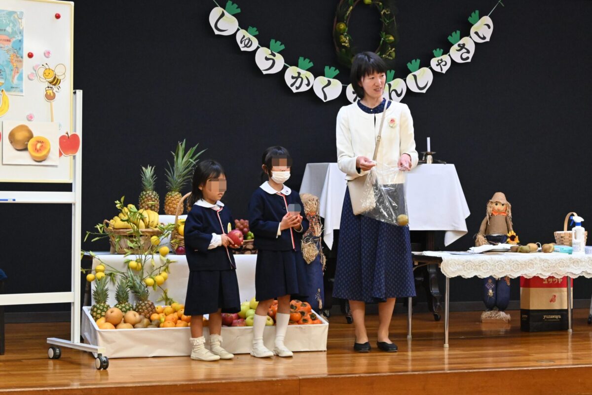 最後になりましたが、果物.野菜のご協力ありがとうございました。卒園児の皆さまからも毎年たくさんの果物.野菜をいただいております。豊かな実りを子どもたちが目にする経験ができたこと重ねて感謝いたします。