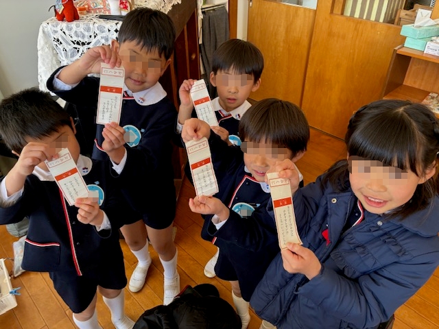 ※年長さんは、ミカエル神社のおみくじを引きました。また13日(火)におみくじを持ってきてくださいね‼