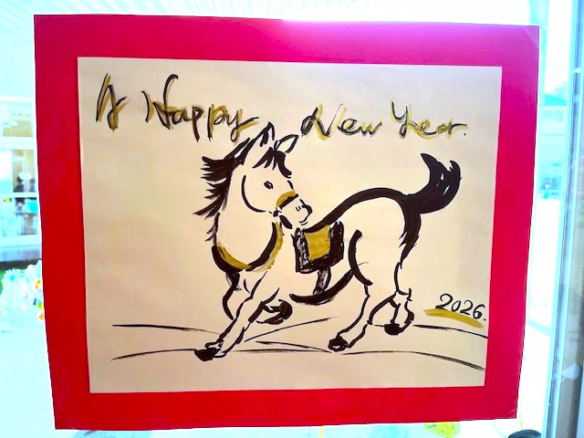 今年は60年に一度巡ってくる干支、丙午(ひのえうま)の年であり、「丙(ひのえ)」は明るさや活力、「午(うま)」は前向きな行動を象徴する干支とされています。新しいことに挑戦し、一人ひとりが成長できる一年にしていきたいです。