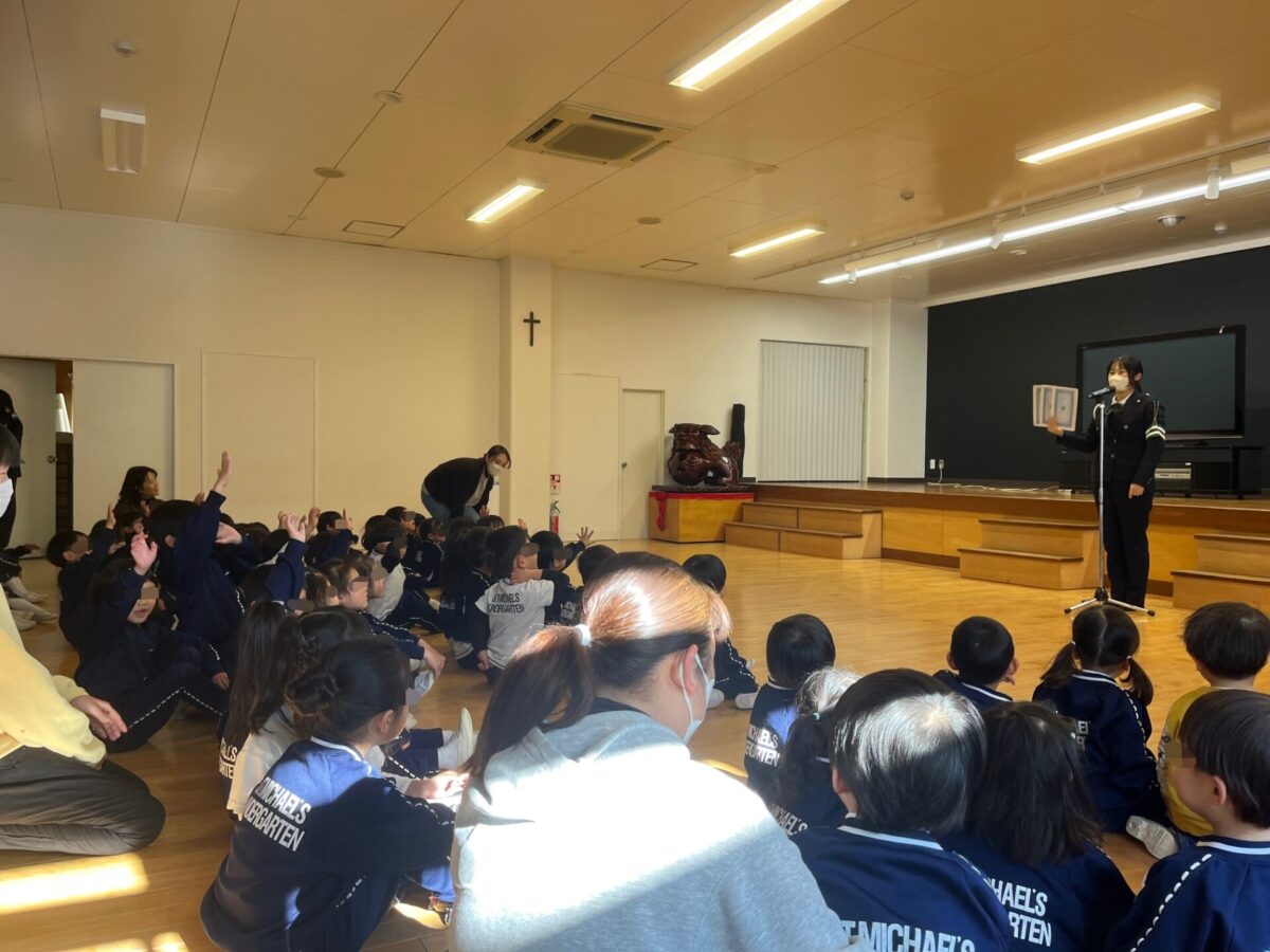 今日は神戸北警察署の方に来ていただき、交通安全教室を行いました。