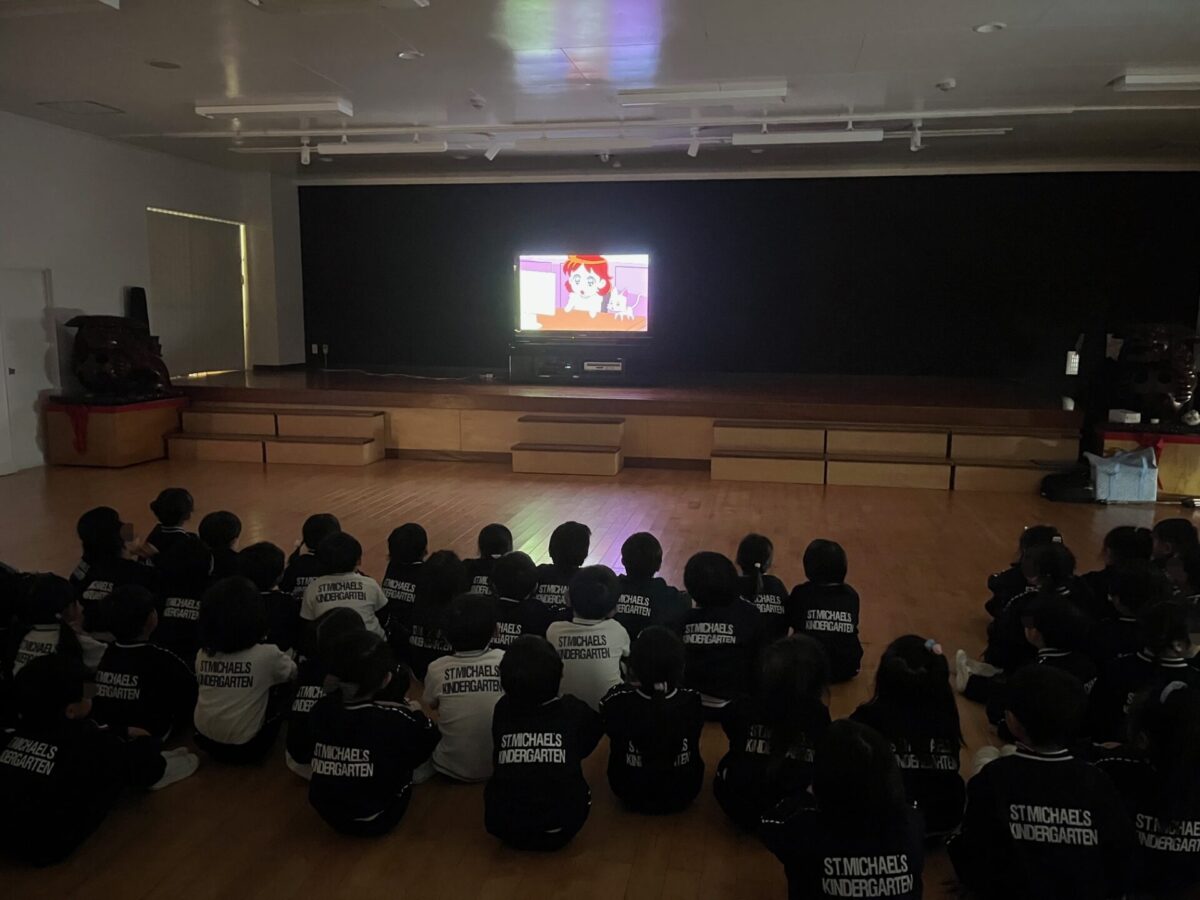セサミストリート(エルモ→赤 ビックバード→黄 クッキーモンスター→青)のカードで信号の色を学んだり、またミカエルに遊びに来てくれた可愛いけんちゃん(腹話術)と一緒に交通ルールを楽しく学ぶことができました。